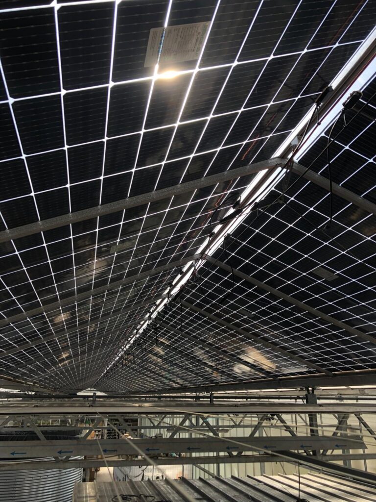 Neben herkömmlichen Photovoltaik Anlagen bieten wir auch speziell PV-Anlagen für Gewächshäuser an. Dafür lassen wir spezielle Glasmodule fertigen, die anstelle von den Scheiben in das Gewächshausdach eingelegt werden können. Die Modulgröße und Lichtdurchlässigkeit kann individuell angepasst werden, so kann man eine Kultivierung unter den Modulen sicherstellen.